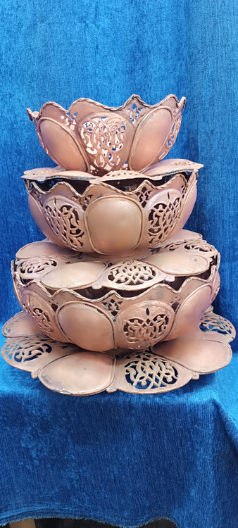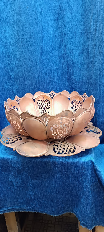 میوه خوری مسی ساخت چکشی. تمام قلم شبکه حرفه ای. زی بندی شده.قابل استفاده برای فیروزه کوبی .مس و پرداز . مینیاتور.نقاشی ایرانی و خاتم.زخامت ۱,۷: حداقل زمان آماده سازی این محصول ۲۰ تا ۳۰ روز