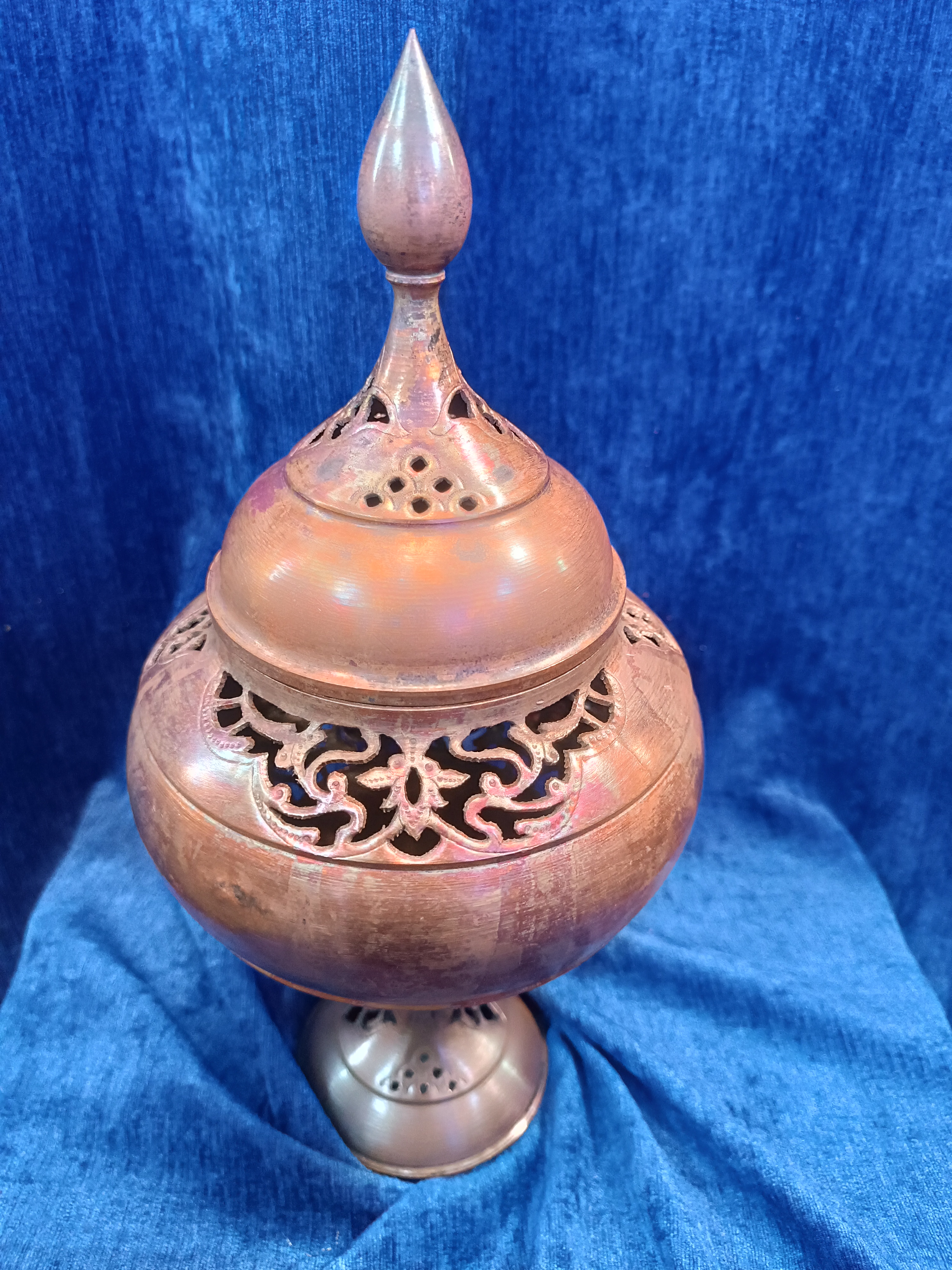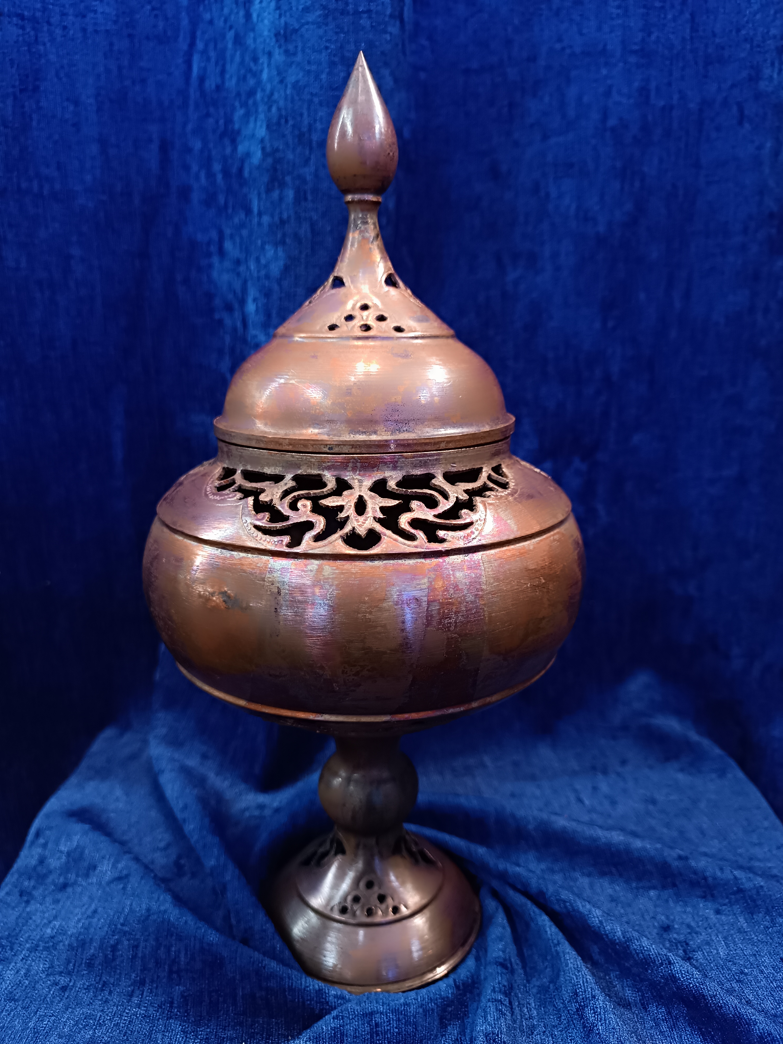 دستهبندی: زیرساخت فیروزه کوبیبرچسبها : تلفیقی از قلمزنی ، شبکه بری و فیروزه (هنر اصیل اصفهان)، صنایع دستی اصفهانشکلاتخوری/تمام قلم و شبکه خاص و تک: حداقل زمان آماده سازی این محصول ۲۰ تا ۳۰ روز