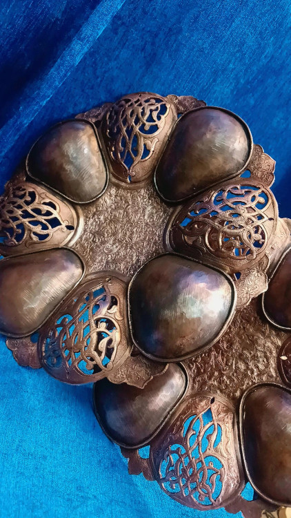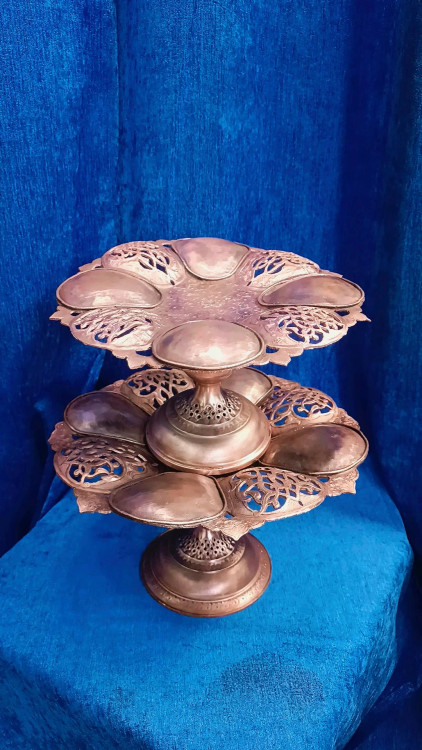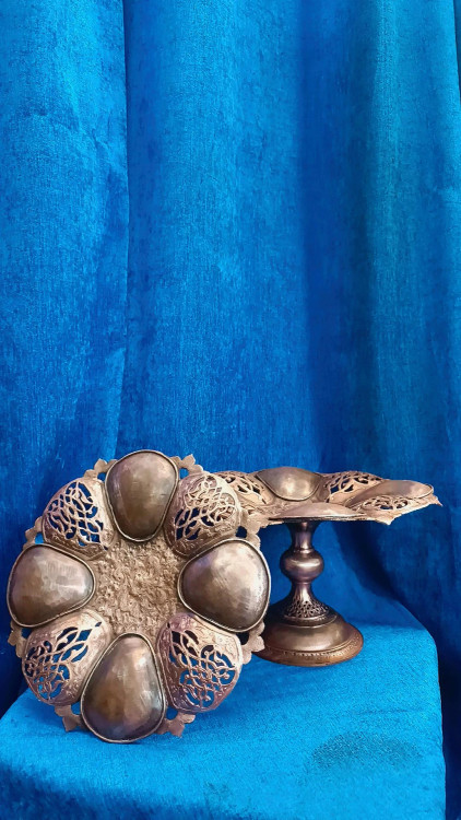 شیرینی خوری مسی دهنه ۲۵سانت ارتفاع۲۰/ساخت چکشی. تمام قلم شبکه حرفه ای. زی بندی شده.قابل استفاده برای فیروزه کوبی .مس و پرداز . مینیاتور.نقاشی ایرانی و خاتم.زخامت ۱,۷: حداقل زمان آماده سازی این محصول ۲۰ تا ۳۰ روز