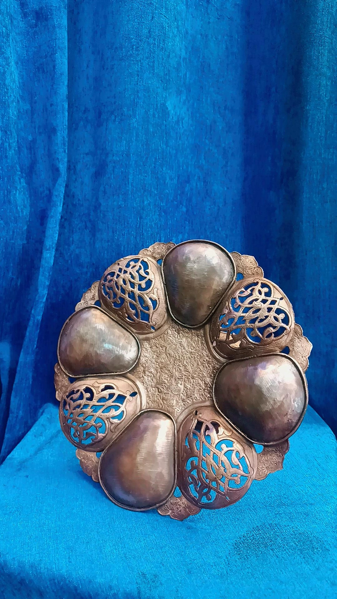 شیرینی خوری مسی دهنه ۲۵سانت ارتفاع۲۰/ساخت چکشی. تمام قلم شبکه حرفه ای. زی بندی شده.قابل استفاده برای فیروزه کوبی .مس و پرداز . مینیاتور.نقاشی ایرانی و خاتم.زخامت ۱,۷: حداقل زمان آماده سازی این محصول ۲۰ تا ۳۰ روز